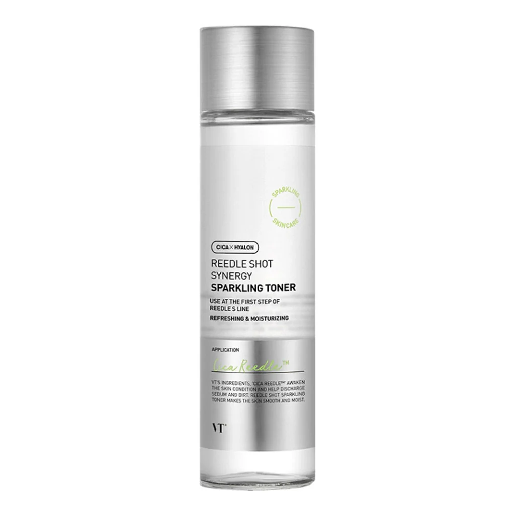 VT Reedle Shot Synergy Sparkling Toner tas ir intensīvs mitrinošs toniks ar mikroadatiņām (Spicule) un minerālūdeni, kas radīts, lai attīrītu poras, nodrošinātu eksfoliējošu efektu un uzlabotu turpmāko kopšanas līdzekļu uzsūkšanos.